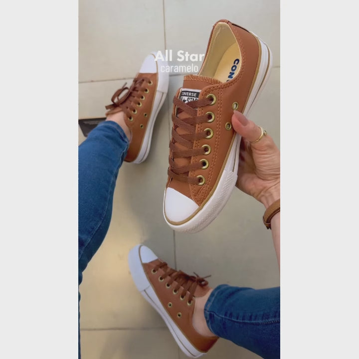 1x Tênis Casual Feminino All Star Caramelo em Couro Premium